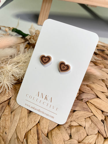 Brown Hearts Stud Earrings