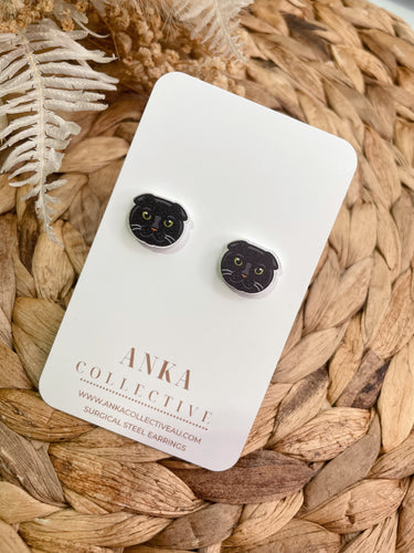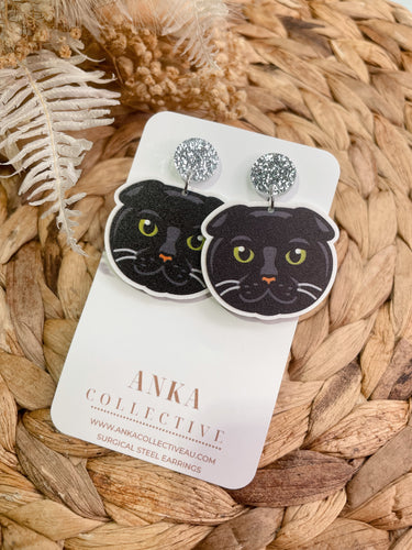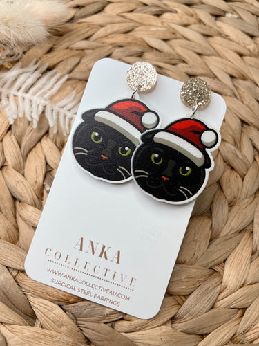 Scottish Fold Black Cat Dangle Christmas Earrings