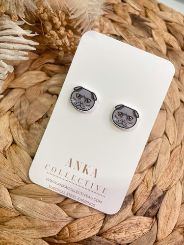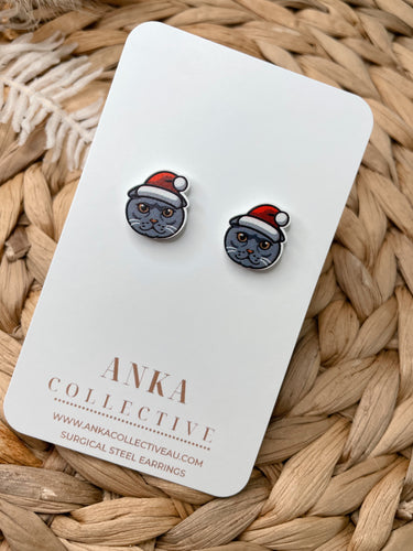 Scottish Fold Gray Cat Stud Christmas Earrings