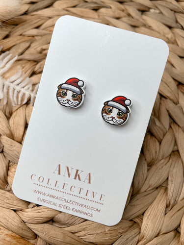 Scottish Fold Stripped Tan Cat Stud Christmas Earrings