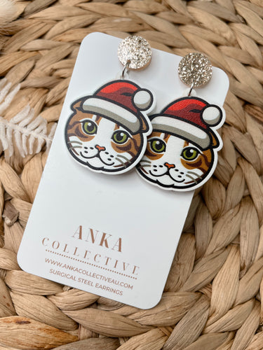 Scottish Fold Stripped Tan Cat Dangle Christmas Earrings