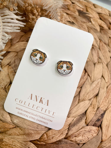 Scottish Fold Stripped Tan Cat Stud Earrings