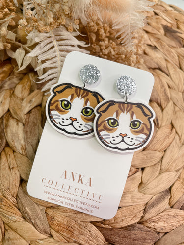 Scottish Fold Stripped Tan Cat Dangle Earrings