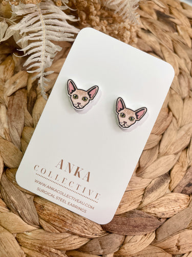 Sphynx Light Tan Cat Stud Earrings