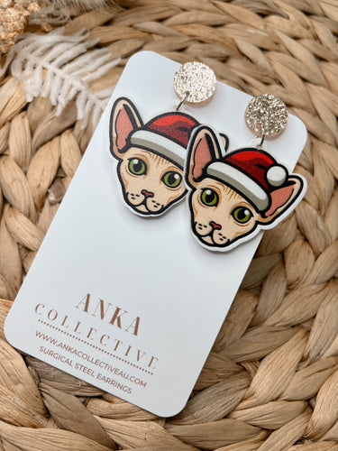 Sphynx Light Tan Cat Dangle Christmas Earrings