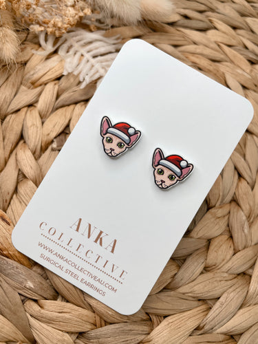 Sphynx Light Tan Cat Stud Christmas Earrings