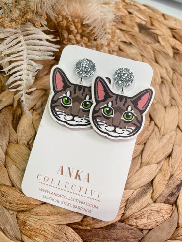 Tabby Brown Cat Dangle Earrings