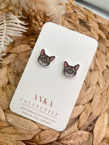 Tabby Brown Cat Stud Earrings