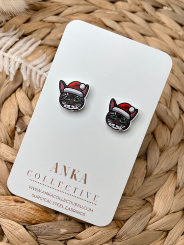 Tabby Brown Cat Stud Christmas Earrings