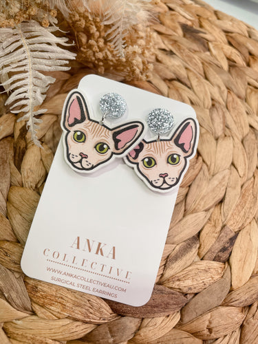 Sphynx Light Tan Cat Dangle Earrings