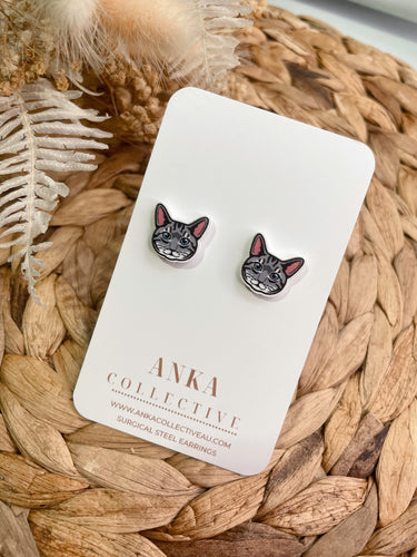 Tabby Grey Cat Stud Earrings