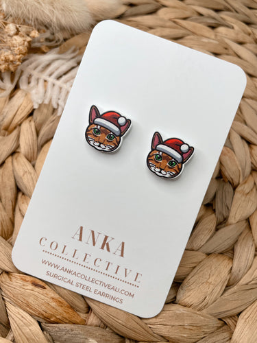 Tabby Orange Cat Stud Christmas Earrings