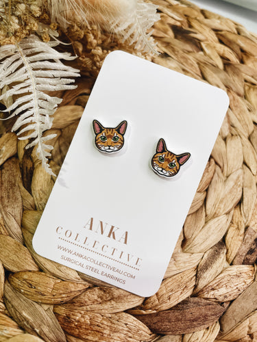 Tabby Orange Cat Stud Earrings